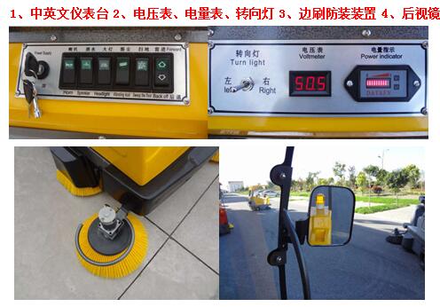進(jìn)口電控系統(tǒng),過(guò)流、欠壓保護(hù),加重底盤(pán),垃圾箱容積大。